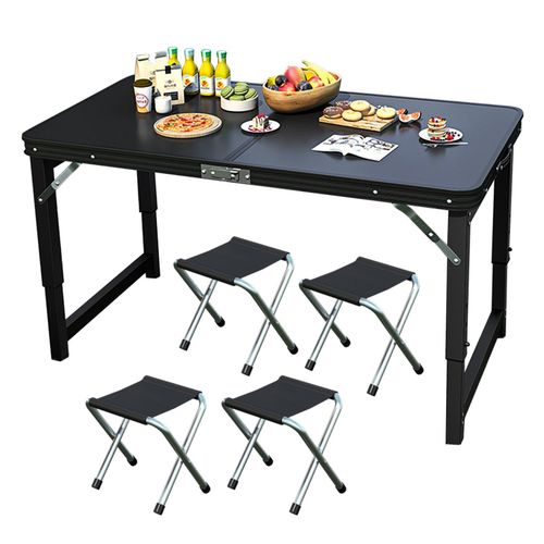 서치잇 접이식 테이블 노점 영업용 휴대용 캠핑테이블 3단 높이조절 알루미늄 식탁 실내 야외 다용도 테이블 의자 세트, 블랙