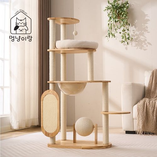 멍냥이랑 우드 트위스트 대형 원목 캣타워, 1개, 단일색상