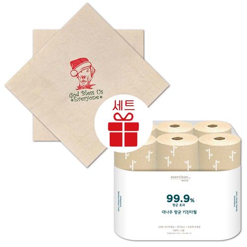 Christmas 친환경 항균 대나무 2종세트 (칵테일냅킨 + 키친타올), 1세트, 1박스, 대나무 산타도그 칵테일500매+키친타올6롤