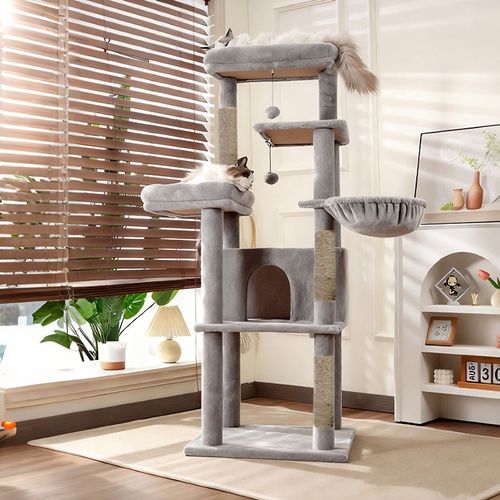 New World 튼튼한 대형 캣타워 다기능 등반+스크래쳐+장난감 고양이 집, 1개, 회색