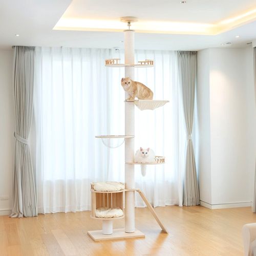 위즈룸 스크래쳐 원목 고양이 캣폴 캣타워, 1개, 아이보리