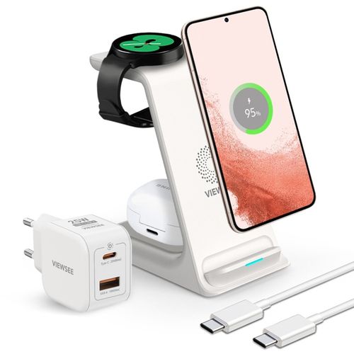 뷰씨 3in1 고속 무선 충전기 거치대 애플워치 갤럭시 워치 호환 25w 초고속 충전기 포함