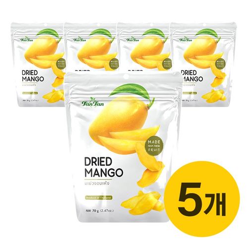 [백화점입점] 태국 건망고 슬라이스 말린 건조 망고 말랭이 건 말린 과일 원물 간식 탄탄망고, 5개, 70g