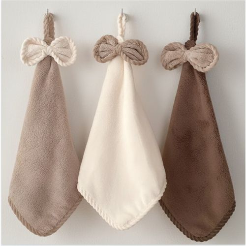 PDG 극세사 리본 주방타올 고리수건, 1세트, 아이보리+베이지+초코