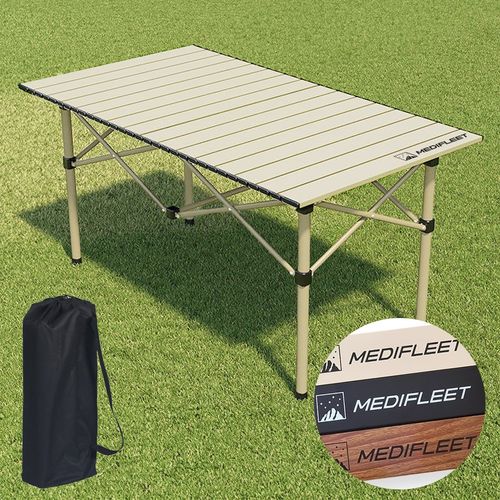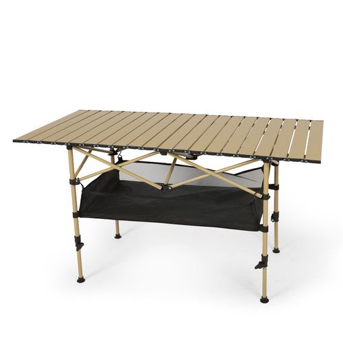 디프 접이식 캠핑 롤 테이블 휴대용 경량, 베이지