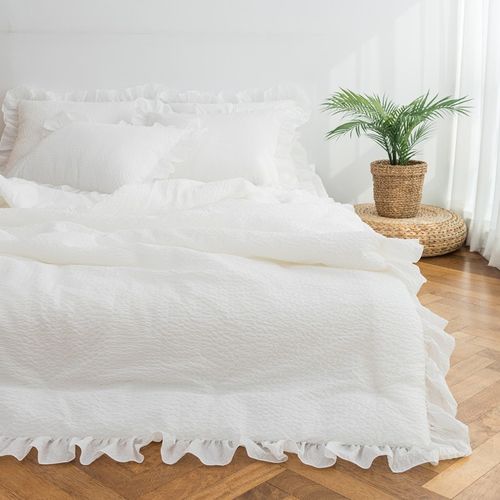 부드러운 60수 순면코튼 우아한 프릴 여름용 시원한 뱀부 시어서커 천연소재 대나무 차렵이불세트