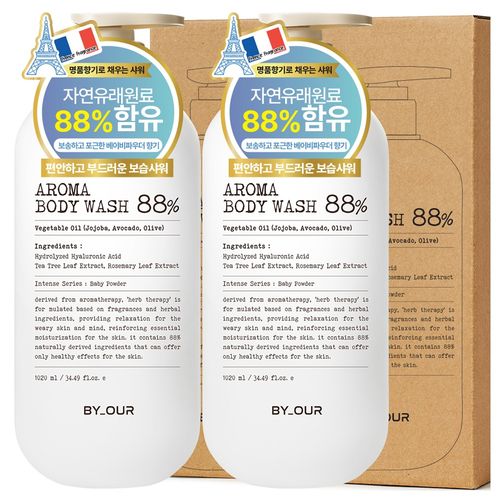 바이아우어 약산성 퍼퓸 아로마 바디워시 베이비파우더, 1.02L, 2개