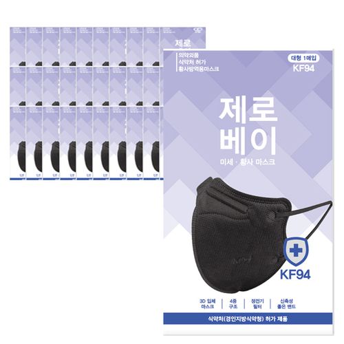 제로베이 미세 방역 마스크 대형 KF94 검정, 1매입, 100개, 블랙