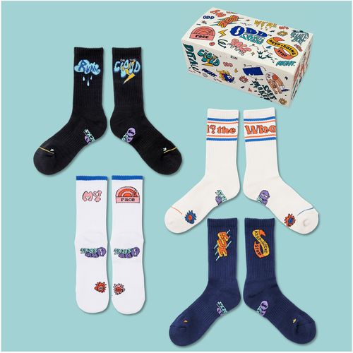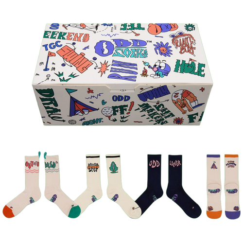 오드삭스 4개 선물세트- 면스포츠양말 캠핑 아웃도어 양말 선물포장, 아웃 오브 오피스 + 캠핑 러버 + 오드 캠퍼 + 히든 스팟, 1개