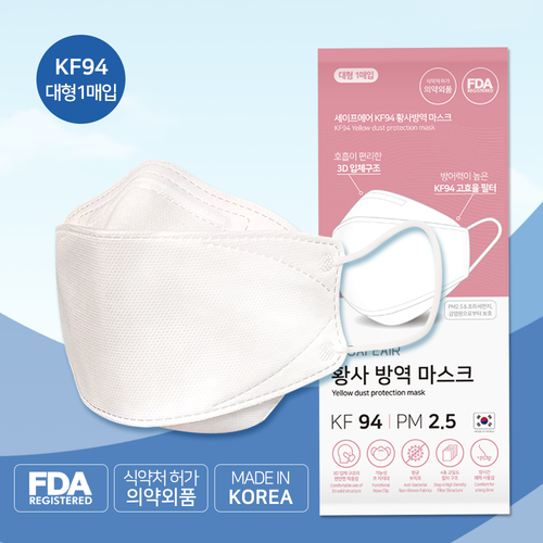 세이프에어 KF94 마스크 귀안아픈 블랙 화이트 대형 50매 100매 개별포장