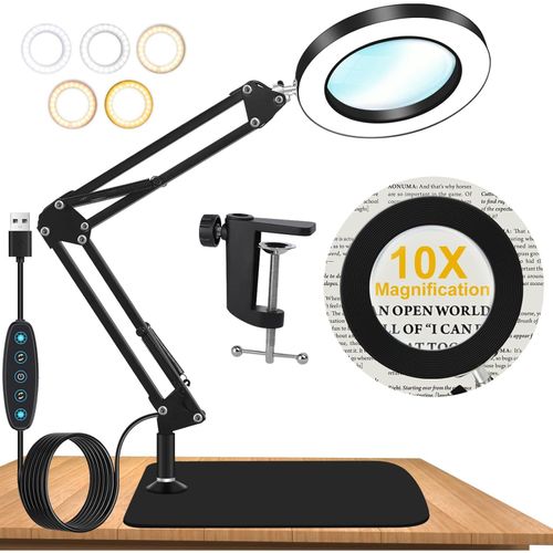 10배 LED 조명 확대경 돋보기 조절 가능한 조절 2-in-1금속 베이스 네일 조명 공예 등 다양한 용도, 1개, 블랙