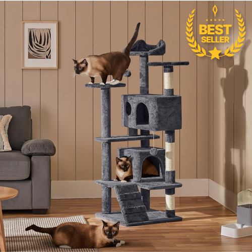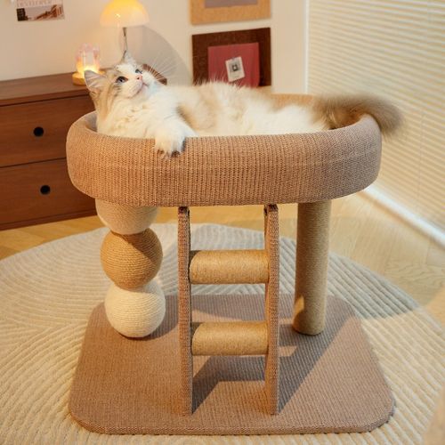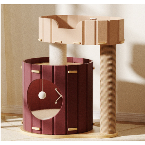 CYLIFE 고양이 숨숨집 통나무형 하우스 스크래쳐 캣타워 고양이 집 1층 2층