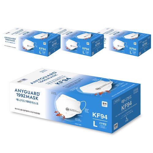 애니가드 뉴황사 방역용 마스크 대형 KF94, 흰색, 4개, 25개입