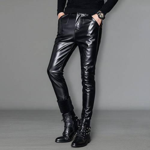지디오 남성 스판 바지 가죽 스키니 레더 팬츠 고퀄리티 바이커 코디 편안한 봄 가을 남자가죽바지