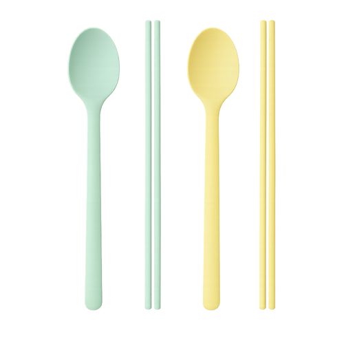 소소낫 실리콘 수저 2인세트, 2세트, 숟가락+젓가락, 민트+옐로우