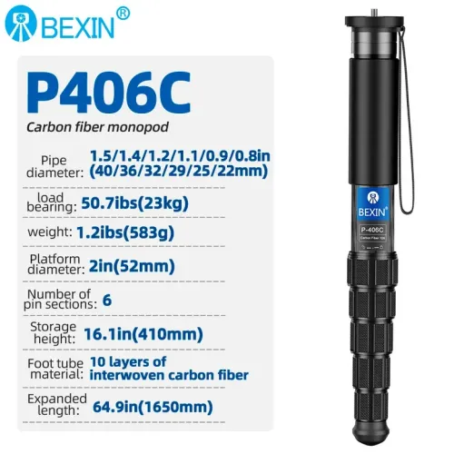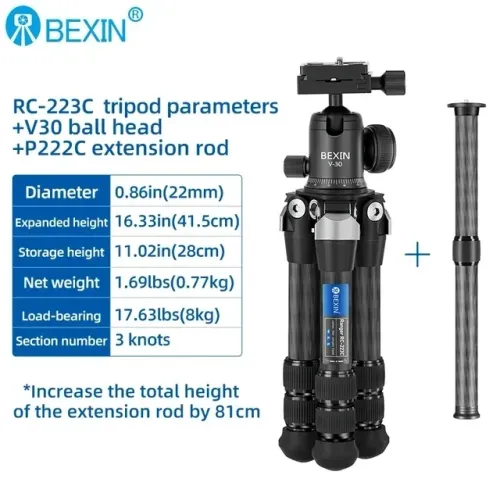 BEXIN 미니 탄소 섬유 삼각대 휴대용 접이식 컴팩트 탁상 DSLR 카메라 헤드 익스텐션 로드 매직 암 액세서