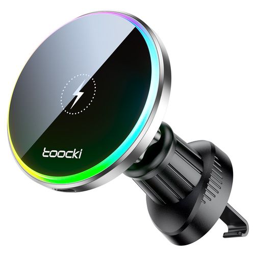 Toocki 맥세이프 차량용 고속 무선 충전 거치대 15W 송풍구형, 블랙