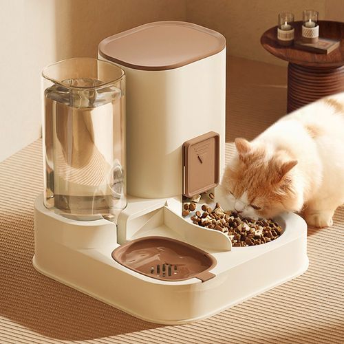 PETCHUCHU 애완동물 반자동 급수기+급식기, 1개, 아이보리