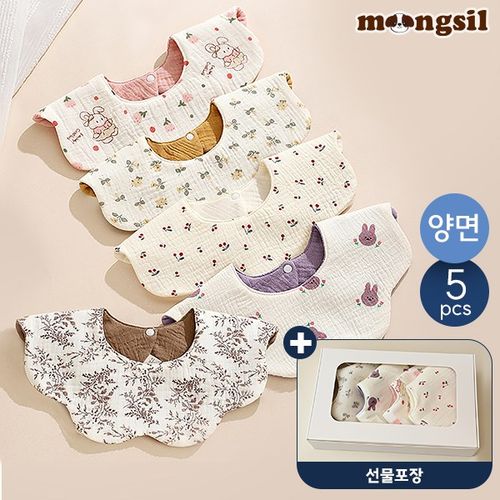 바냐 360도 롤링 거즈면 방수 턱받이 5종 세트 유아 신생아 선물포장 무형광 아기 여아 남아