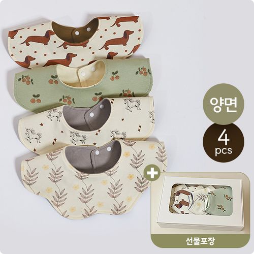 몽실이 북유럽풍 360도 양면 턱받이 4종 세트 순면 무형광 롤링 사계절 아기 유아 신생아 선물포장