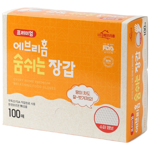 김밥집 업소용 국산 에브리홈 숨쉬는 위생장갑 땀 안차는 일회용, 4개, 100개입