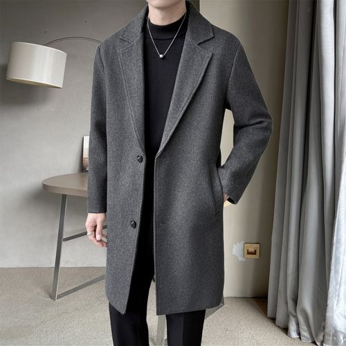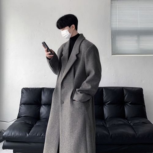 ANYOU 남성 남자 겨울코트 싱글 오버핏 롱코트 정장넥 트렌치코