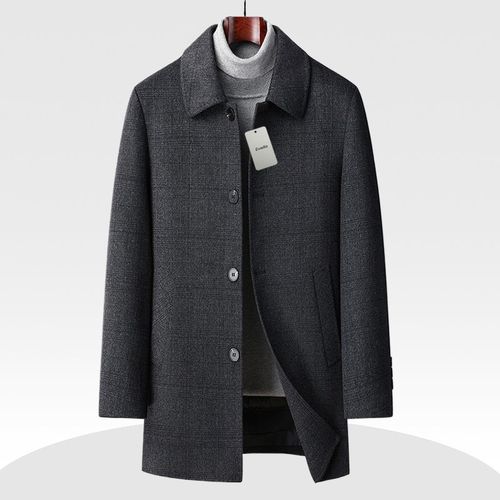 Evadia 남성 모직 코트 블레이저 카라넥 정장 울코트 아우터 체크 반코트 재킷 삼계절