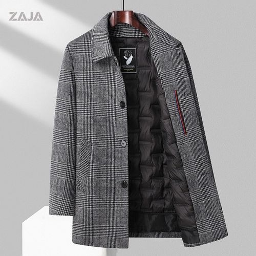 ZAJA 남자 겨울 울 코트 정장 오리털 패딩 안감 트렌치 코트