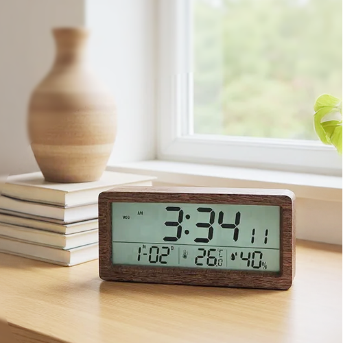 애즈맘 무소음 탁상 알람 lcd 시계 우드 원목 전자 디지털 시계 미니 나무 집들이 생일 선물, 내추럴
