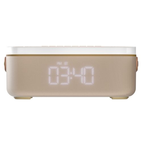 WELIVE 4in1 고속무선충전 블루투스5.3 다기능 스피커 LED무드등 탁상시계 (레이저 각인 가능), 화이트