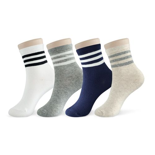 코지24 아동 남아 여아 초등 주니어 흰색 회색 네이비 베이지 줄무늬 스트라이프 중목 양말 키즈클럽 캠퍼스링글4족팩