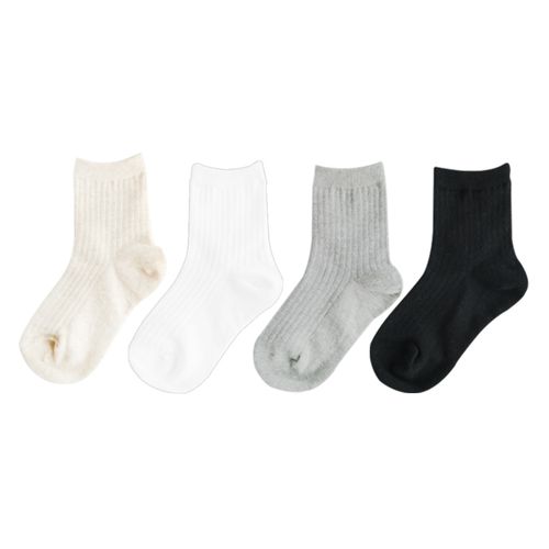 코지24 아동 남아 여아 초등 주니어 무지 흰색 회색 검정 베이지 단색 중목 양말 키즈클럽 골지중목4족팩