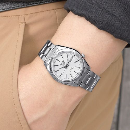 세이코5 남성 오토매틱 데이데이트 화이트 메탈 손목시계 SNKL41K1