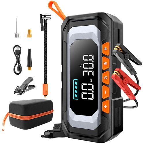 NICESUN 6in1 차량용 점프스타터+무선 전동 에어펌프+스마트 점프 케이블+12V 긴급 시동 점프스타터+16000mAh 대용량 보조배터리+LED 조명 휴대용 멀티 응급 키트, 1개, 1개입