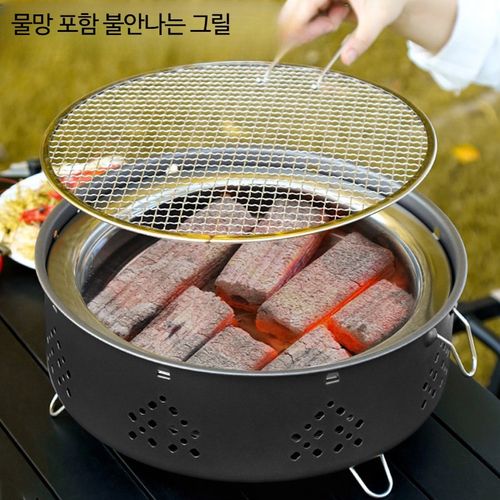 물받침포함 불안나는 바베큐그릴 야외용 화롯대 야외화로 구이판 조절 캠핑그릴 휴대용바베큐 화로 바베큐