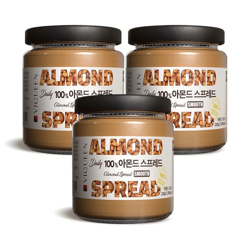 바이퀸 100% 아몬드 버터 스프레드 무첨가, 3개, 220g