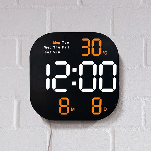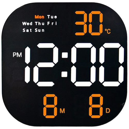 촘스토리 라운드 탁상겸용 벽시계 LED 디지털 알람 날짜 온도, 오렌지