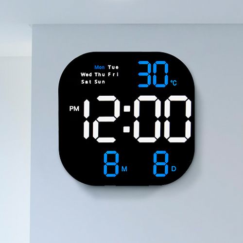 촘스토리 라운드 탁상겸용 벽시계 LED 무소음 디지털 알람 날짜 온도, 블루