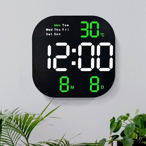 촘스토리 라운드 탁상겸용 벽시계 LED 디지털 알람 날짜 온도, 그린