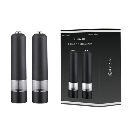 1+1 엘루나로 자동 전동 소금 후추 그라인더, 1세트, 블랙+블랙, 80ml