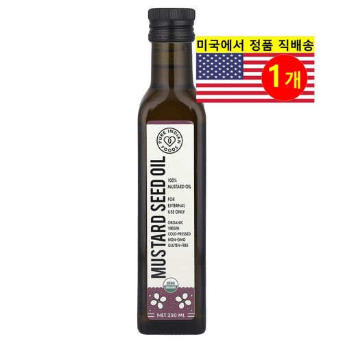 Pure Indian Foods 건강하고 풍미가 좋은 냉압착 100% 순수 오가닉 겨자 씨 오일 250ml 1개