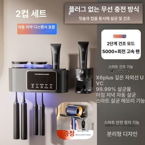 무선 벽걸이형 가정용 자외선 건조기 스마트 공기 건조 칫솔거치대 보관대 포함 충전식 미니멀 디자인