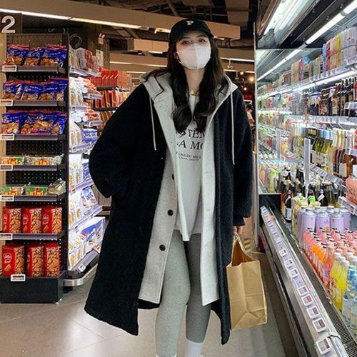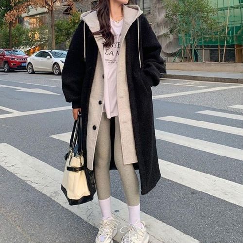 롱코트 여성 레이어드 롱 점퍼 뽀글이 후드 겨울 ove+1069Ae