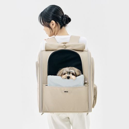 멀리 마일러백팩 강아지 이동가방 반려견 백팩 애견 고양이 이동장, 1개, 마일러백팩-베이지+프론트쿠션-애쉬그레이