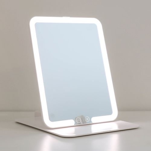무아스 슬림 폴더블 스퀘어 휴대용 무선 LED 탁상거울, 화이트