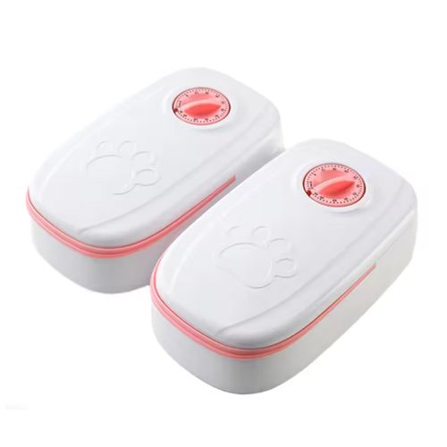 아이레노 반려동물 자동급식기 타이머식 급여기 정해진 시간에 정량 급여 가능한 반려견 반려묘 식사관리 자동사료통, 1개, 핑크2구, 350ml