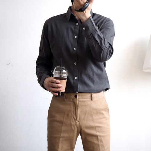 벨로시티 코튼 면 린넨 세미 오버핏 캐주얼 긴팔 셔츠