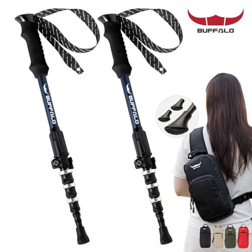 버팔로 써밋엑스 P&P 등산스틱 5단 자동 지팡이 등산가방 세트 국내생산, 블루, 1세트