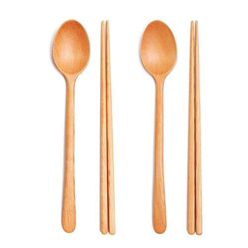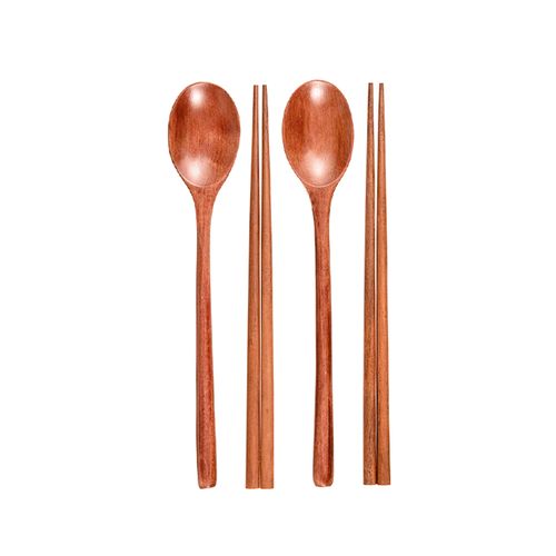 휴홈 천연 옻칠 파스텔 나무 수저 +젓가락 4인 세트, 핑크4개, 1개