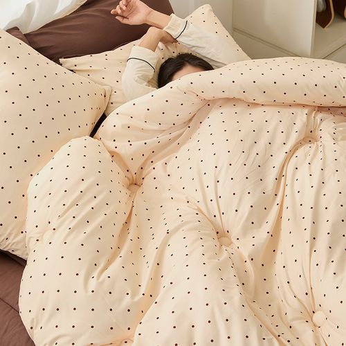KURUA 부드러운 사계절 배색 도트 브라운 차렵이불 세트